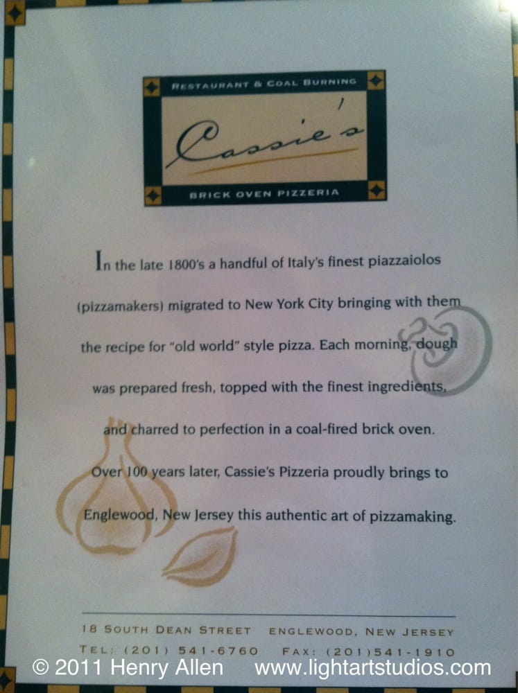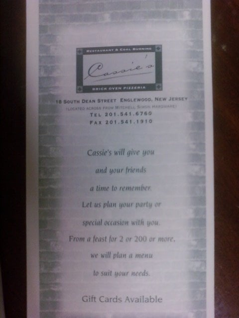 Introducing the menu at Cassie's Pizzeria, located in Englewood, NJ, offers a variety of Italian-style pizzas, salads, and appetizers. The Cauliflower Pizza, BBQ Chicken Pizza, and White Clam Pizza are all standout options. For salads, the Arugula & Portobello Salad and Cassie's Chopped Salad are fresh and flavorful choices. Appetizers like Baked Clams Oreganato and Garlic Bread are perfect for sharing or starting your meal. The restaurant also offers a range of amenities, including delivery, takeout, and catering services, making it a convenient choice for any occasion. With a casual atmosphere, full bar, and TV for entertainment, Cassie's Pizzeria is a great spot for groups, families, or even a solo meal. Don't miss out on the delicious food and welcoming ambiance at Cassie's Pizzeria.